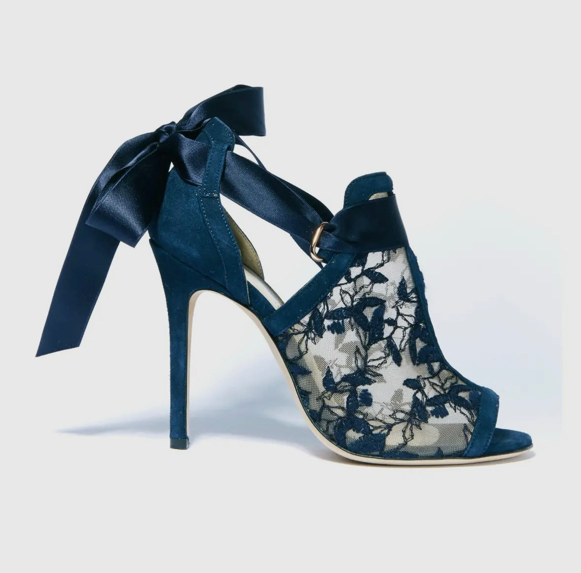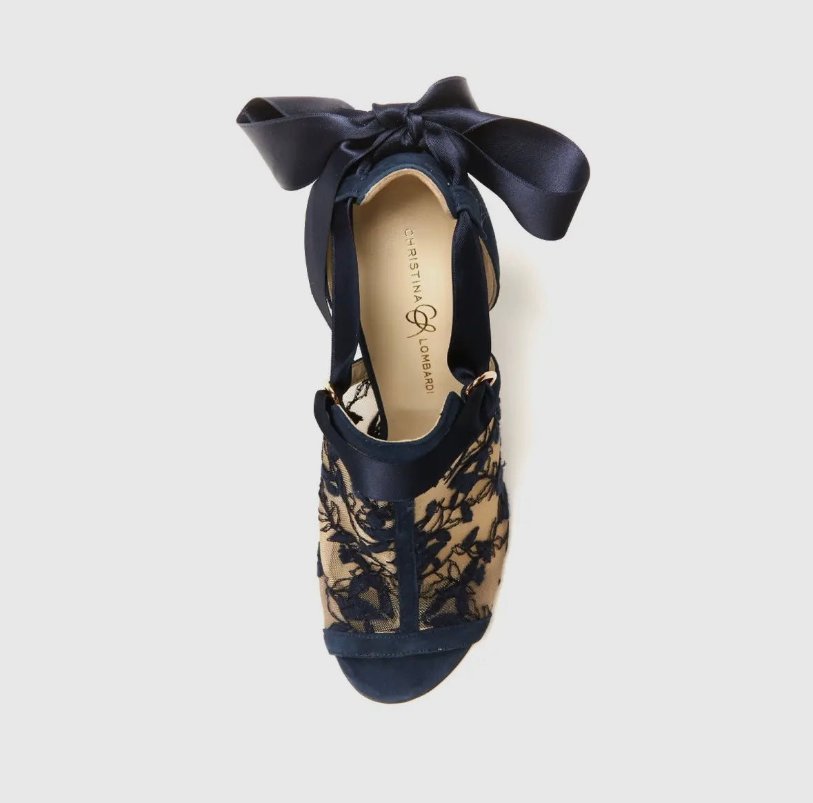 Christina Lombardi’s ultra feminine, delicate twist on an open toe bootie silhouette. Hand crafted in Italy.